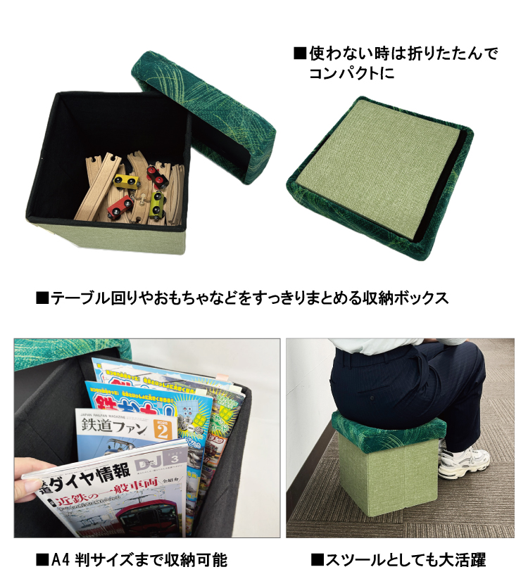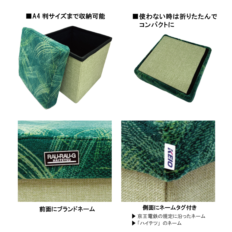 京王電鉄8000系の座席シートを使用した折りたたみモケット収納ボックス。