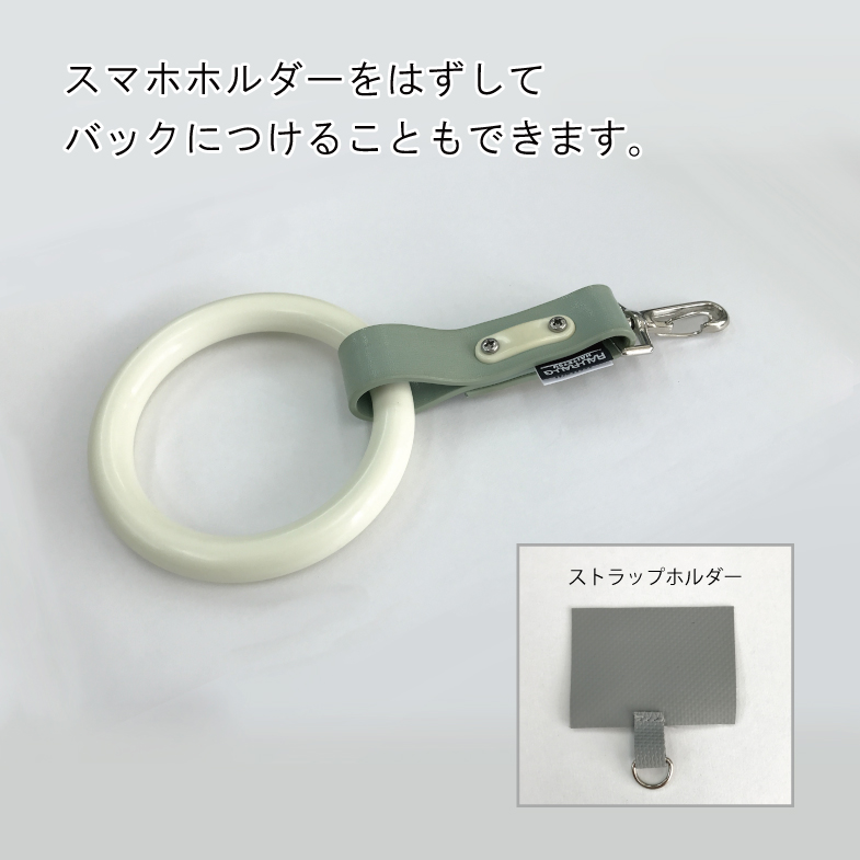 スマホだけでなくもちろんバッグにもとりつけれます!