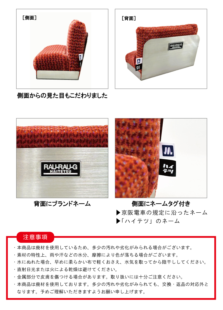 私たちの身近な交通機関として親しまれてきた電車の部材をアップサイクルし、この先の時間も共に駆け抜ける身近な商品として企画しました。