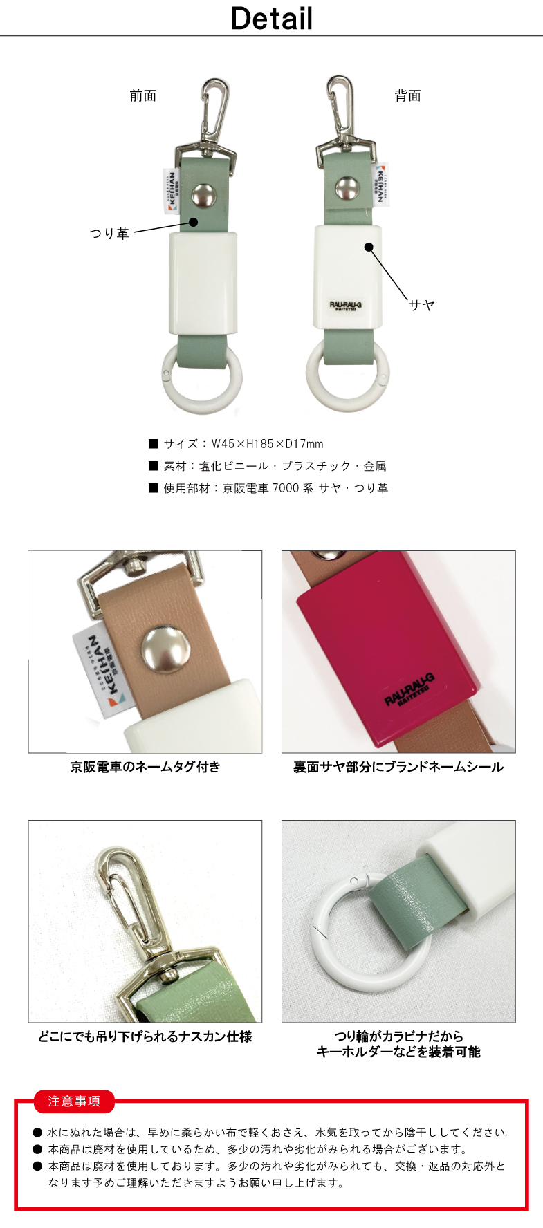 本物に似せたこだわりのつり輪で、より本物感を演出しながらカラビナとしても使用可能。