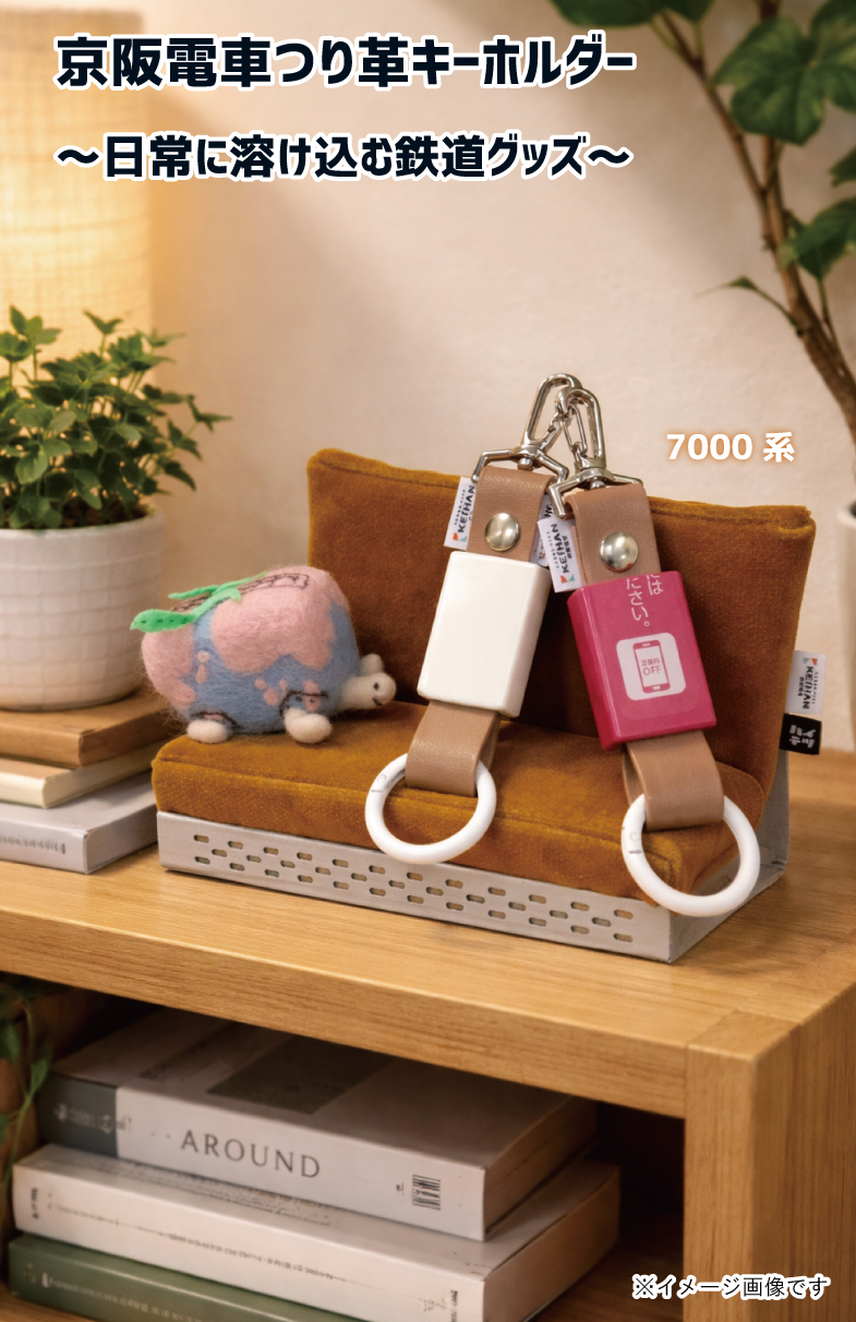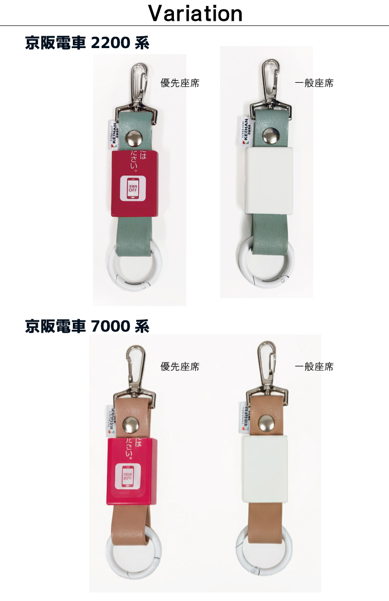 京阪電車2200系と7000系のつり革・サヤ部分をそのまま使用したリアルでレアなキーホルダー!