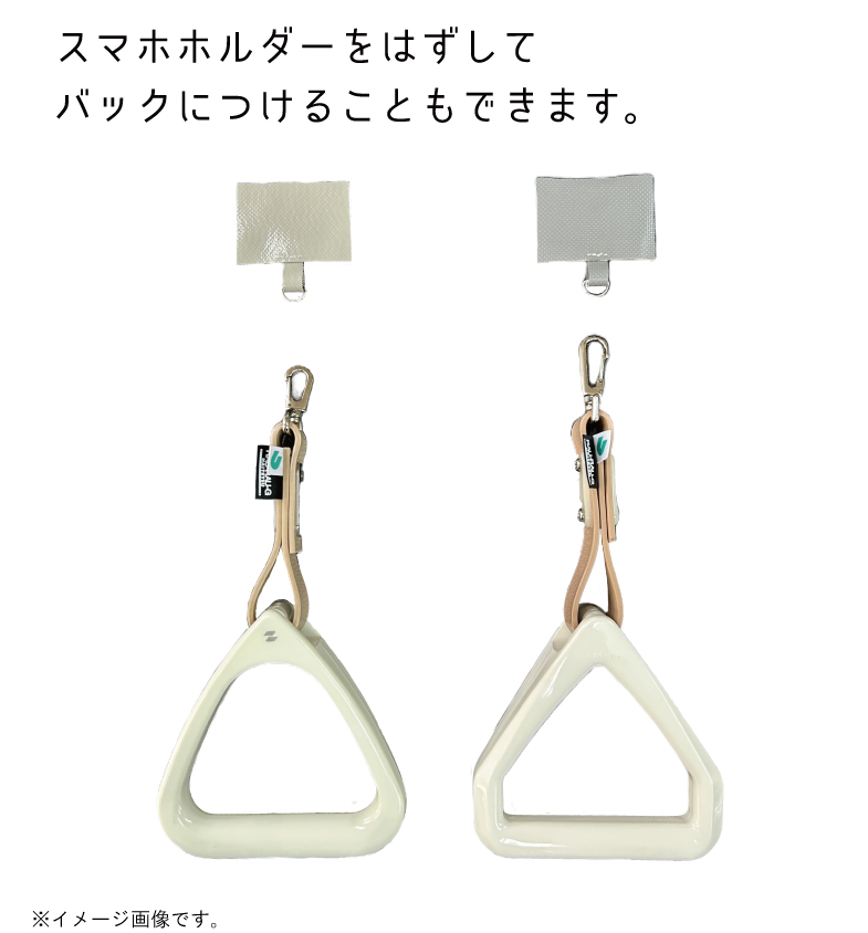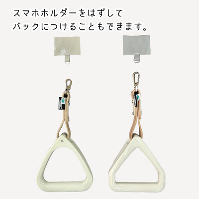 スマホだけでなくもちろんバッグにもとりつけれます!