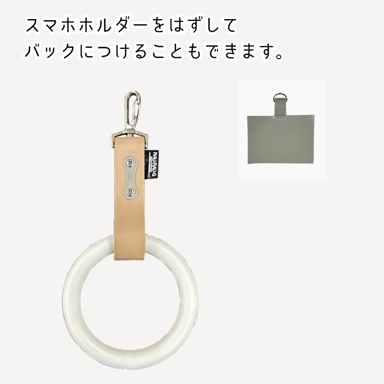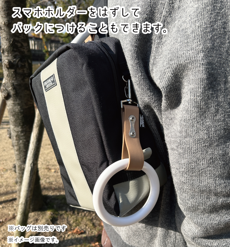 スマホだけでなくもちろんバッグにもとりつけれます!