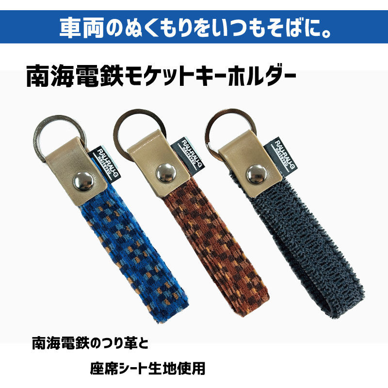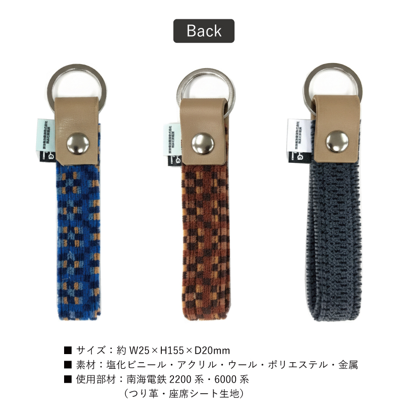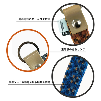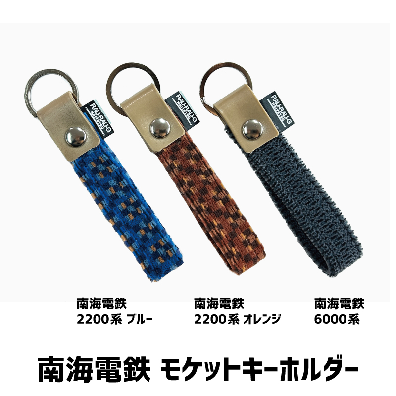 南海電鉄6000系・2200系のつり革と座席シートの素材を使ったモケットキーホルダーが登場!