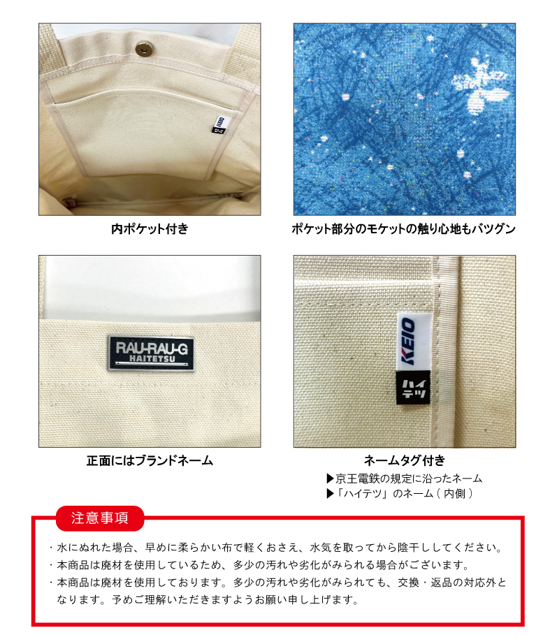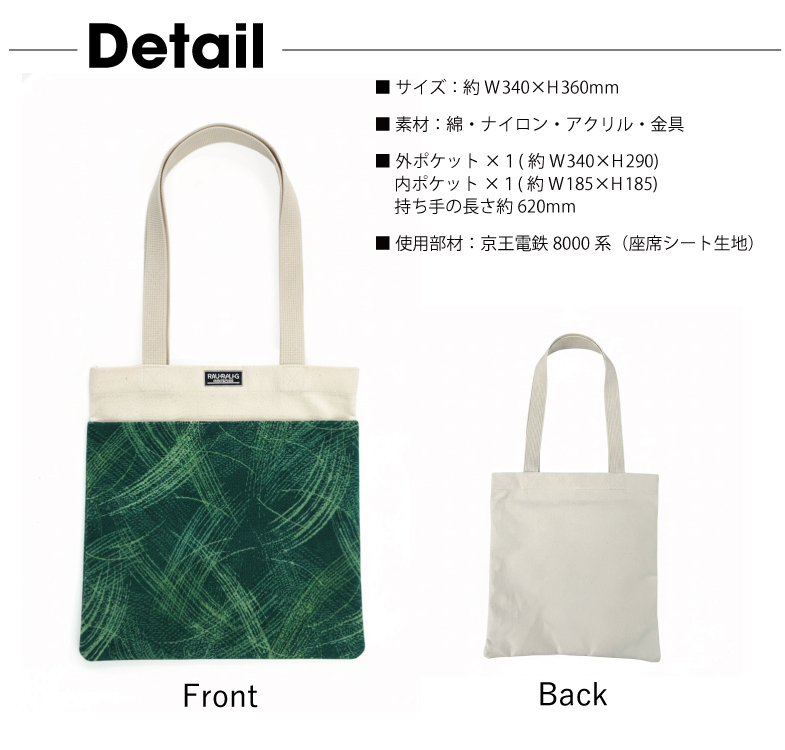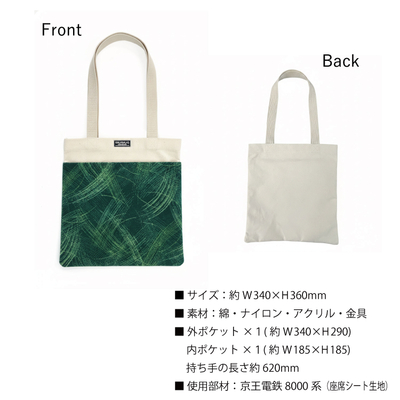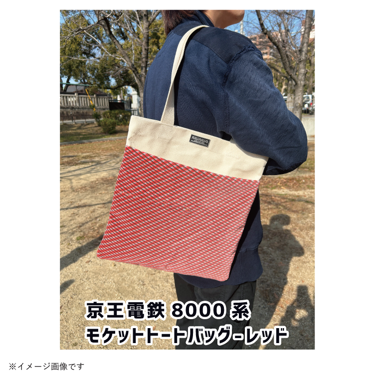 京王電鉄8000系の座席シートを使用したモケットトートバッグ。