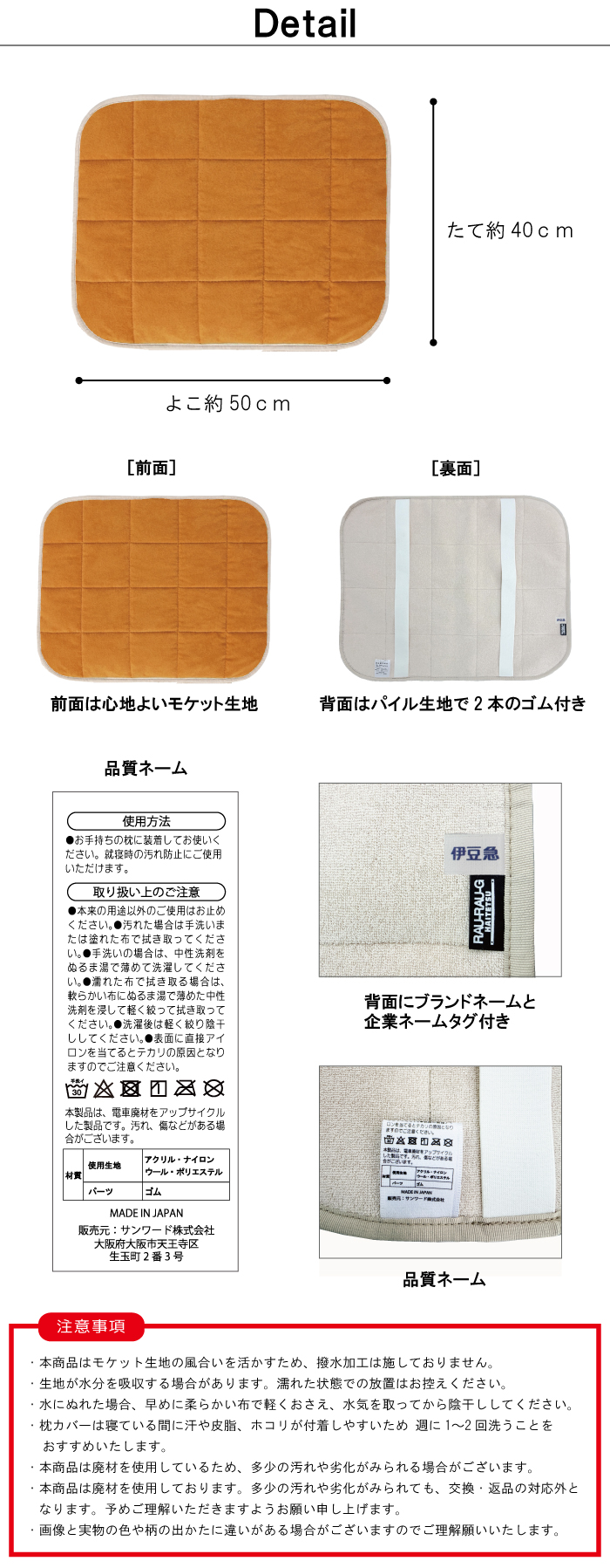 座席として長年使われてきた丈夫で肌触りのよい生地を、毎日の眠りの時間に。鉄道好きの方はもちろん、一点もののアップサイクルアイテムとしてもおすすめです。